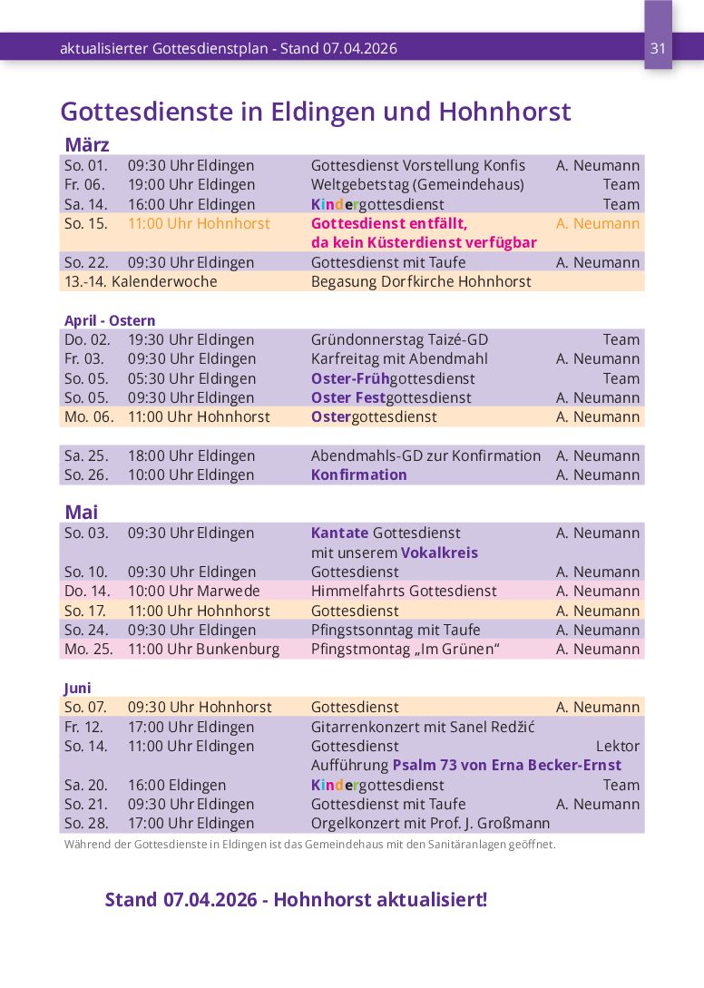 Der neue Jahrgang startet nach den Sommerferien. Er trifft sich gemeinsam mit dem Vorjahresjahrgang jeden Freitag von 16:30 bis 17:30 Uhr im Gemeindehaus der Kirche, Bahnhofstraße 1 in Eldingen. Hast du noch Lust, komm einfach vorbei. Wir freuen uns.